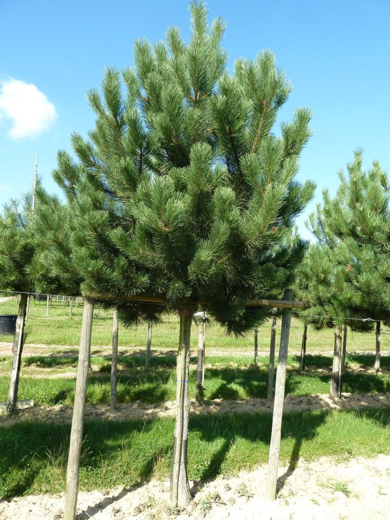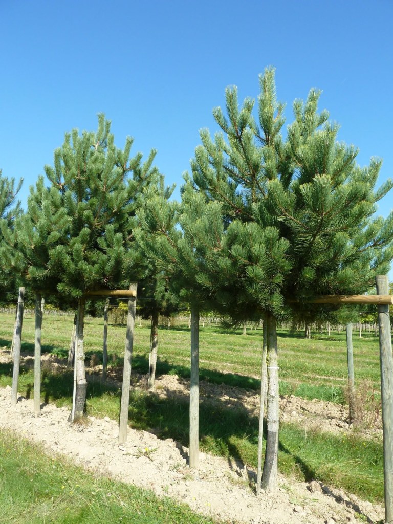 Port conique large devenant à l’état adulte un parasol. Reste bien garni jusqu’à la base durant sa jeunesse, surtout s’il est isolé. Aiguilles vert très sombre. Accepte bien tous les sols. Avec sa cime ronde et large, il est très interessant pour se cacher ou se masquer d'un vis à vis.