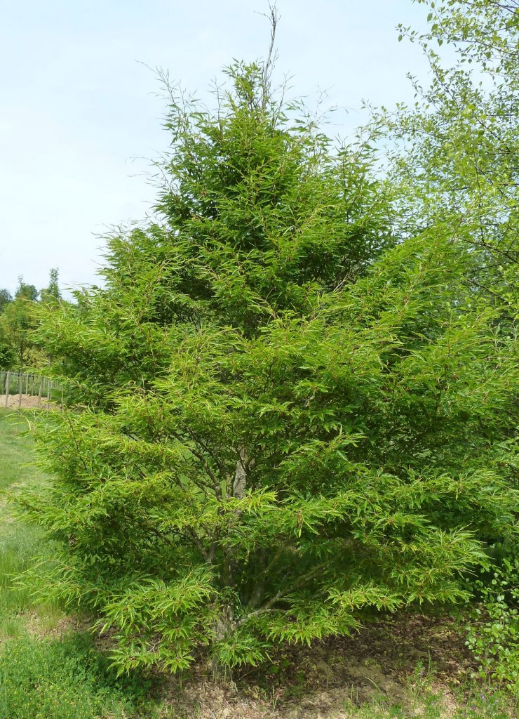 Port conique relativement dense. Il se distingue par son feuillage vert très finement découpé, presque linéaire. Exposition mi-ombragé. Utilisation en isolé.