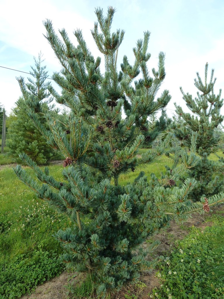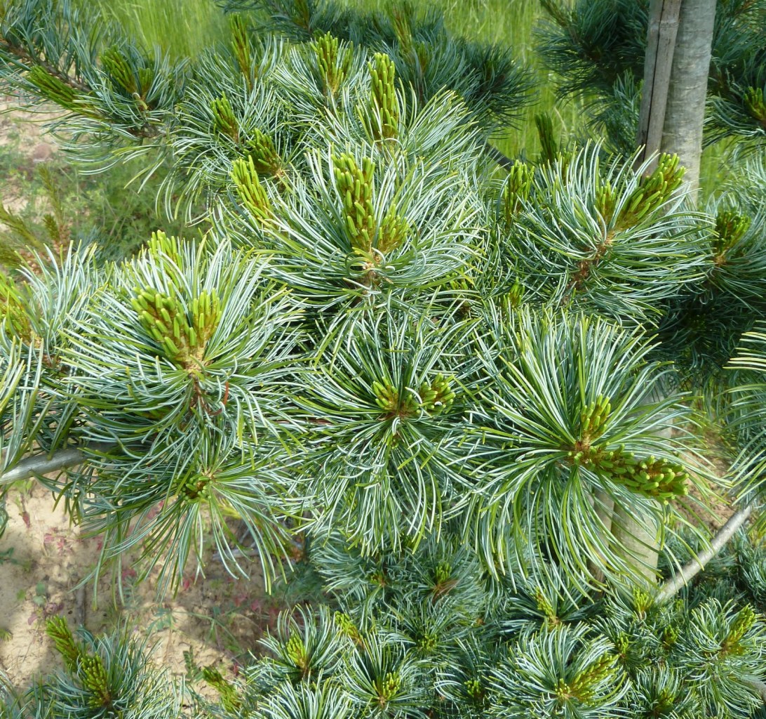 Conifère à croissance lente au port étalé et asymétrique en vieillissant. Aiguilles vert clair légèrement bleuté, douces au toucher, groupées par 5 aux extrémités des rameaux. Cônes obliques ou pendants brun rougeâtre persistant plongtemps. Peu exigeant, se plante en isolé, dans les parcs ou jardins. Aime tous les sols sauf calcaires. A utiliser en isolé ou en groupes.