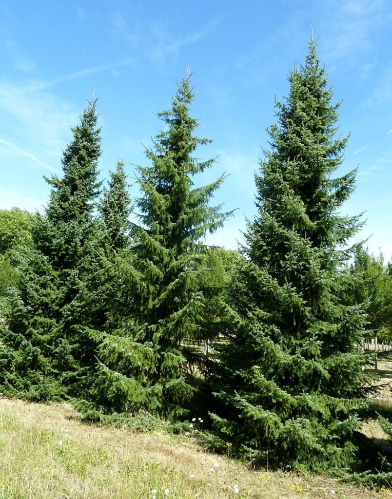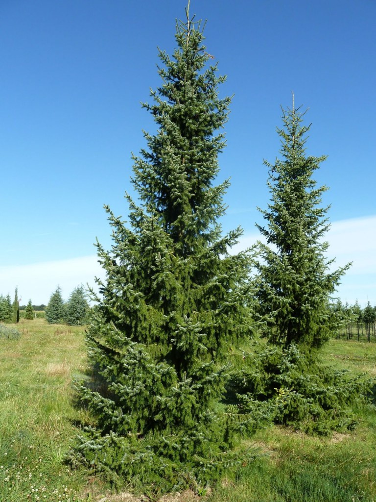 Port conique très effilé, vigoureux. Branches assez courtes horizontales aux extrémités relevées ce qui lui donne une allure "pagode". Aiguilles vert sombre au revers argenté, cônes violet foncé. Préfère les sols acides bien drainés mais frais.